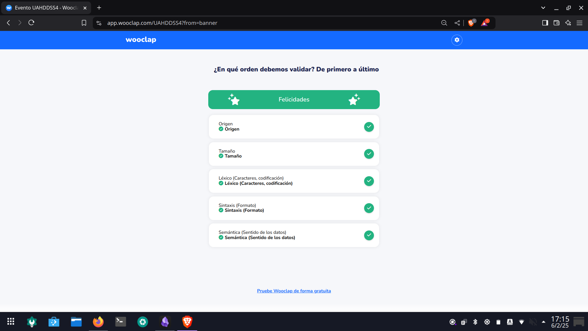 El orden recomendado para validar los datos contempla diferentes aspectos clave: