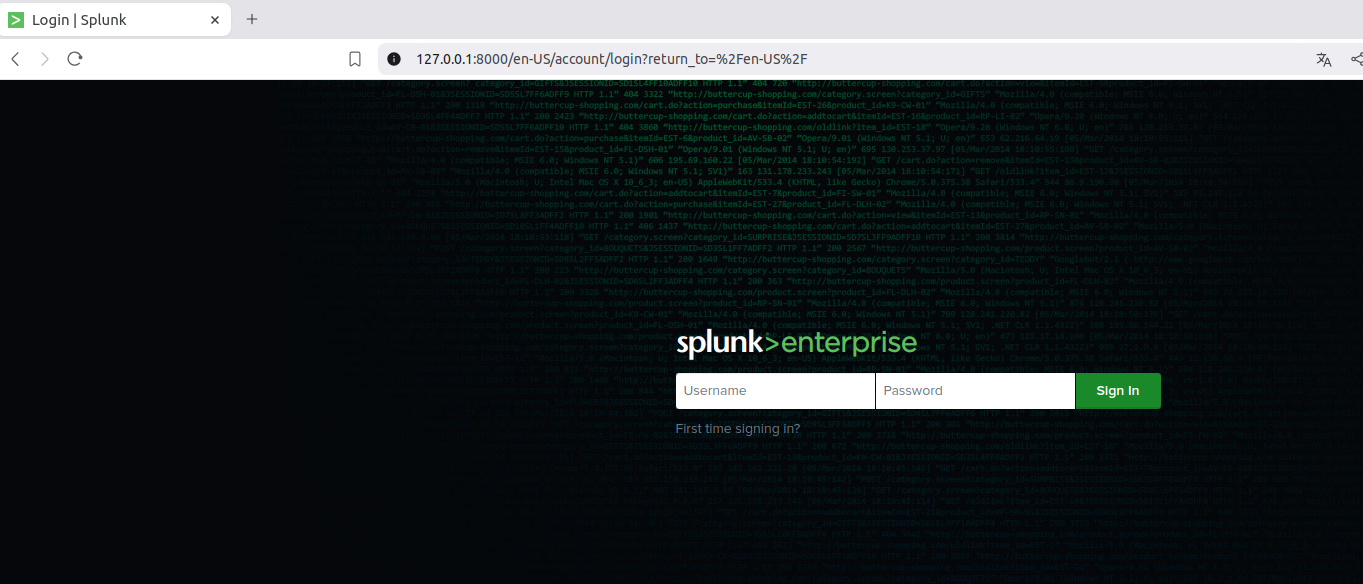 sudo docker run -d -e "SPLUNK_START_ARGS=--accept-license" -e "SPLUNK_USER=root" -e "SPLUNK_PASSWORD=root" -p "8000:8000" splunk/splunk`